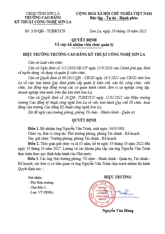» Quyết định 351 về việc bổ nhiệm lại viên chức quản lý (21.10.2022)