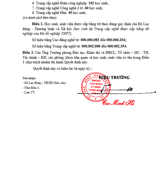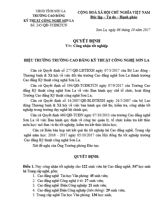 Quyết định công nhận tốt nghiệp cho học sinh, sinh viên năm học 2016 - 2017