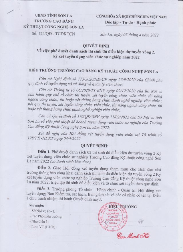 Quyết định phê duyệt danh sách đủ điều kiện dự tuyển vòng 2, xét tuyển dụng viên chức năm 2022
