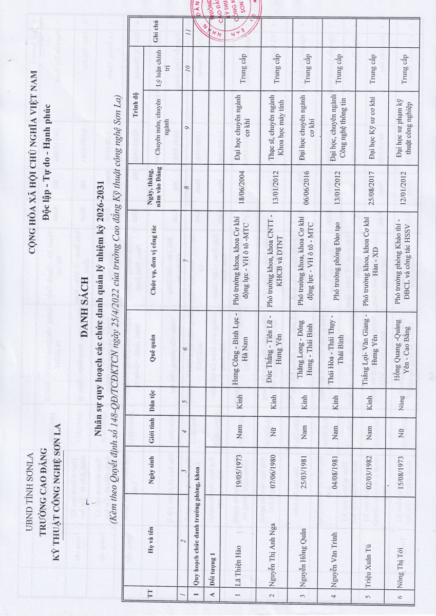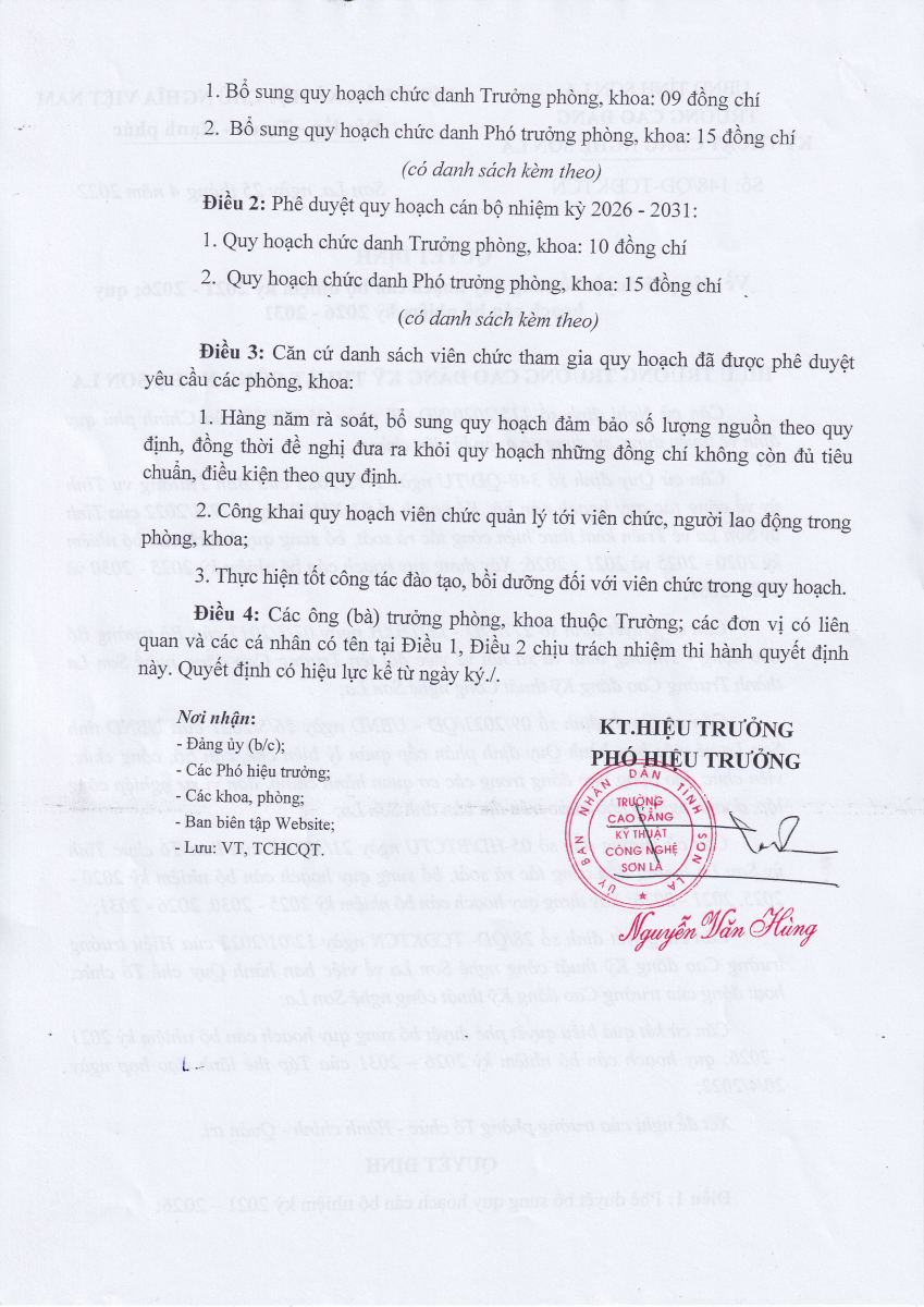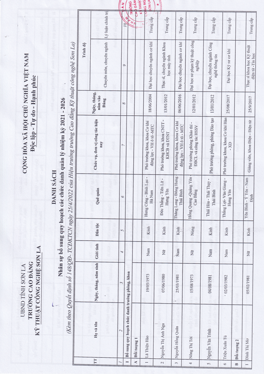 Quyết định số 148/QĐ-TCĐKTCN ngày 25/4/2022 về việc phê duyệt bổ sung quy hoạch cán bộ nhiệm kỳ 2021 - 2026; quy hoạch nhiệm kỳ 2026 - 2031