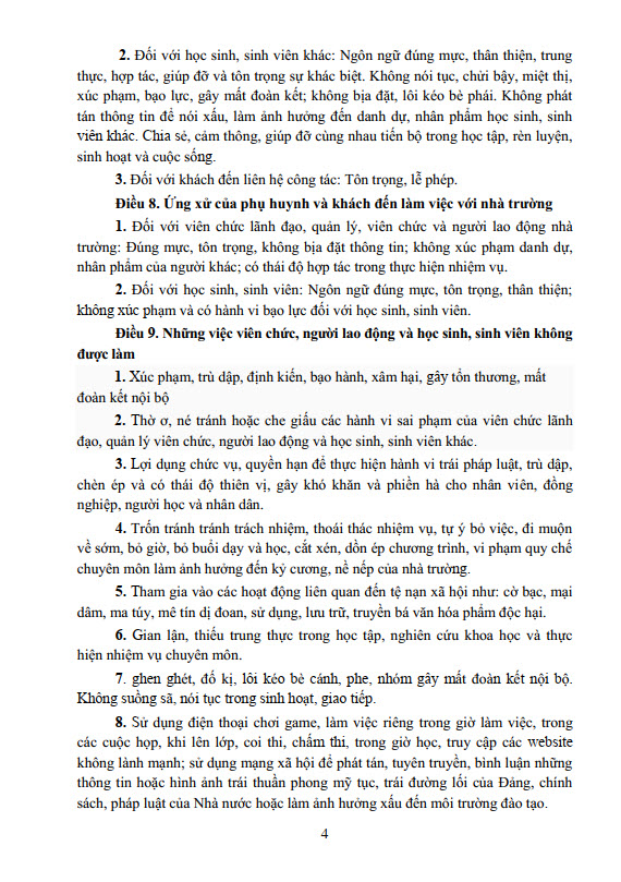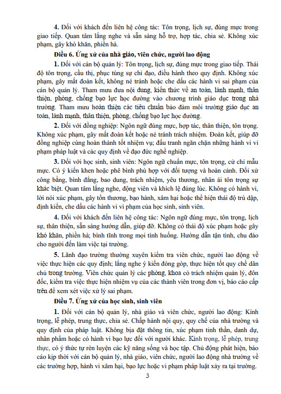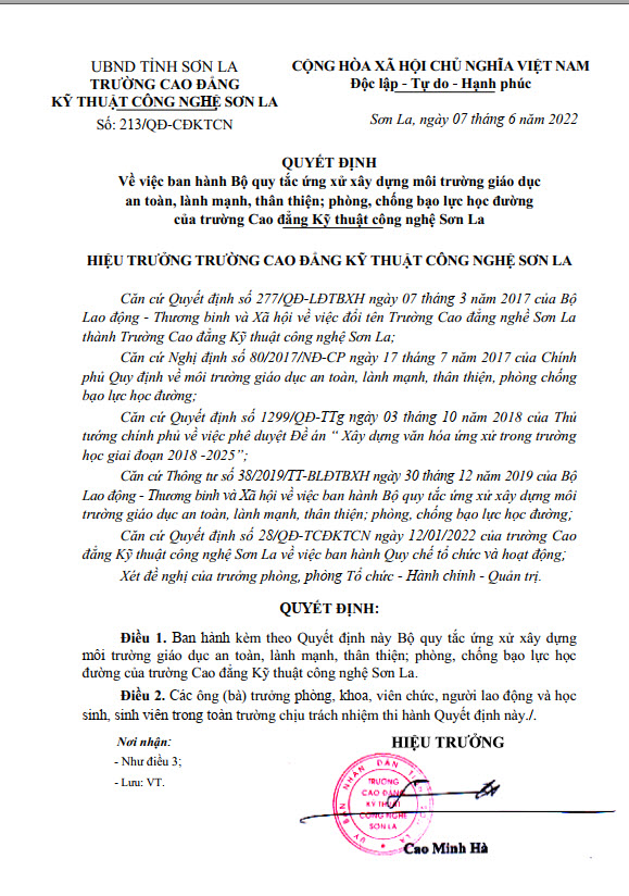 Quyết định số 213 về việc ban hành bộ quy tắc ứng xử xây dựng môi trường giáo dục