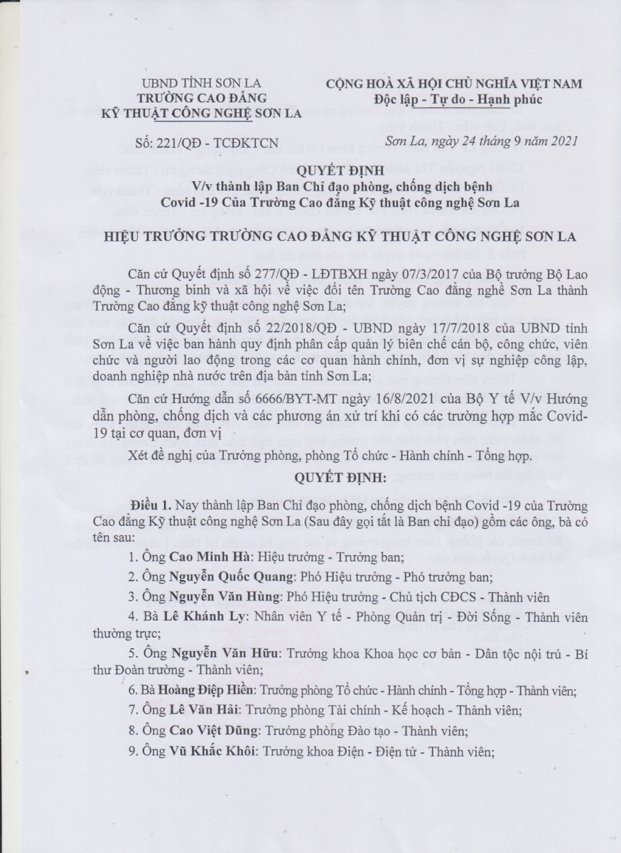 Quyết định thành lập Ban chỉ đạo phòng chống dịch bệnh Covid-19
