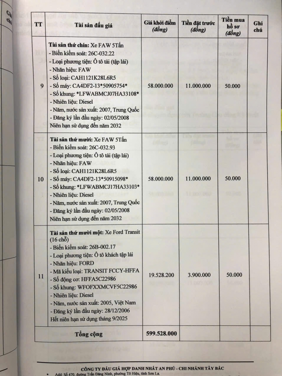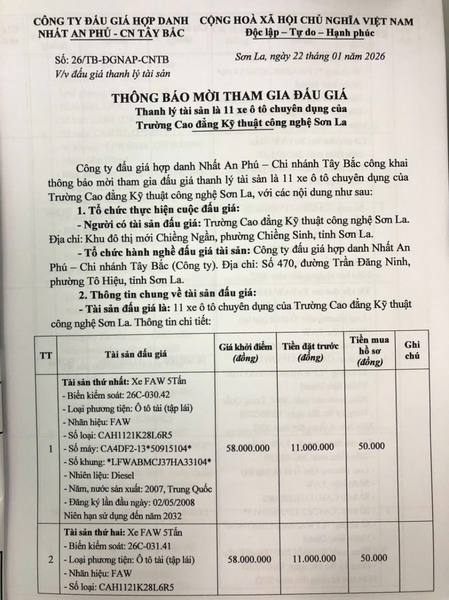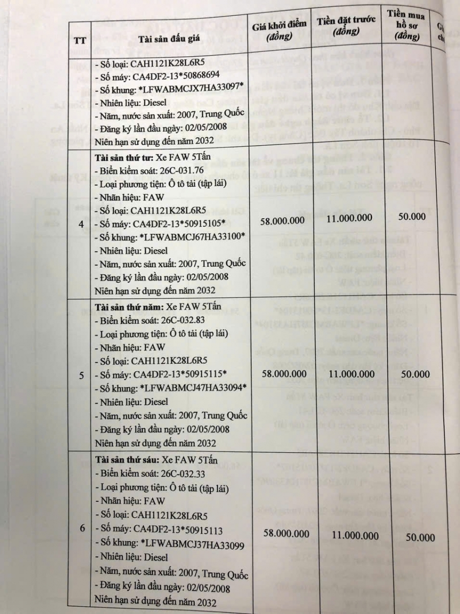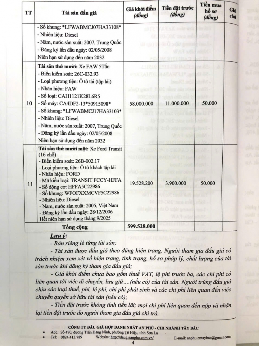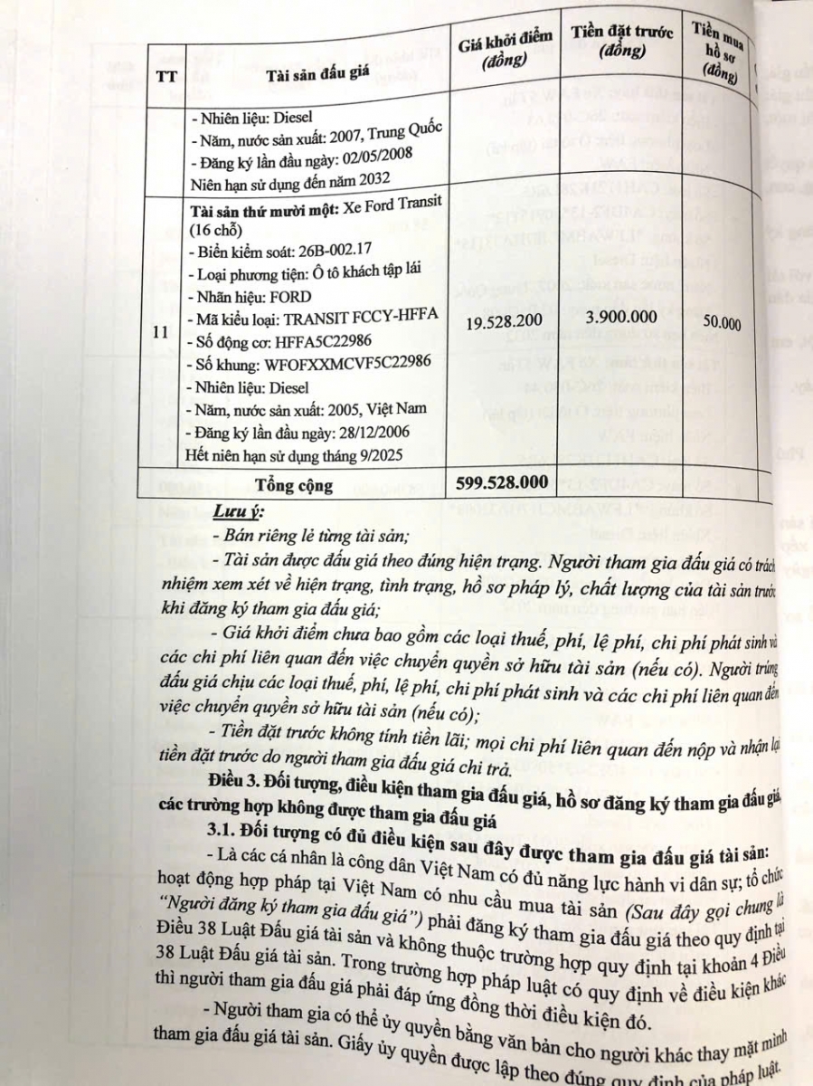 Thông báo mời tham gia đấu giá thanh lý tài sản công 11 xe ô tô