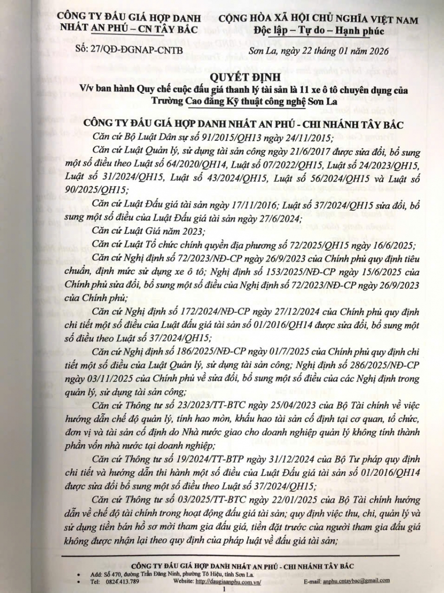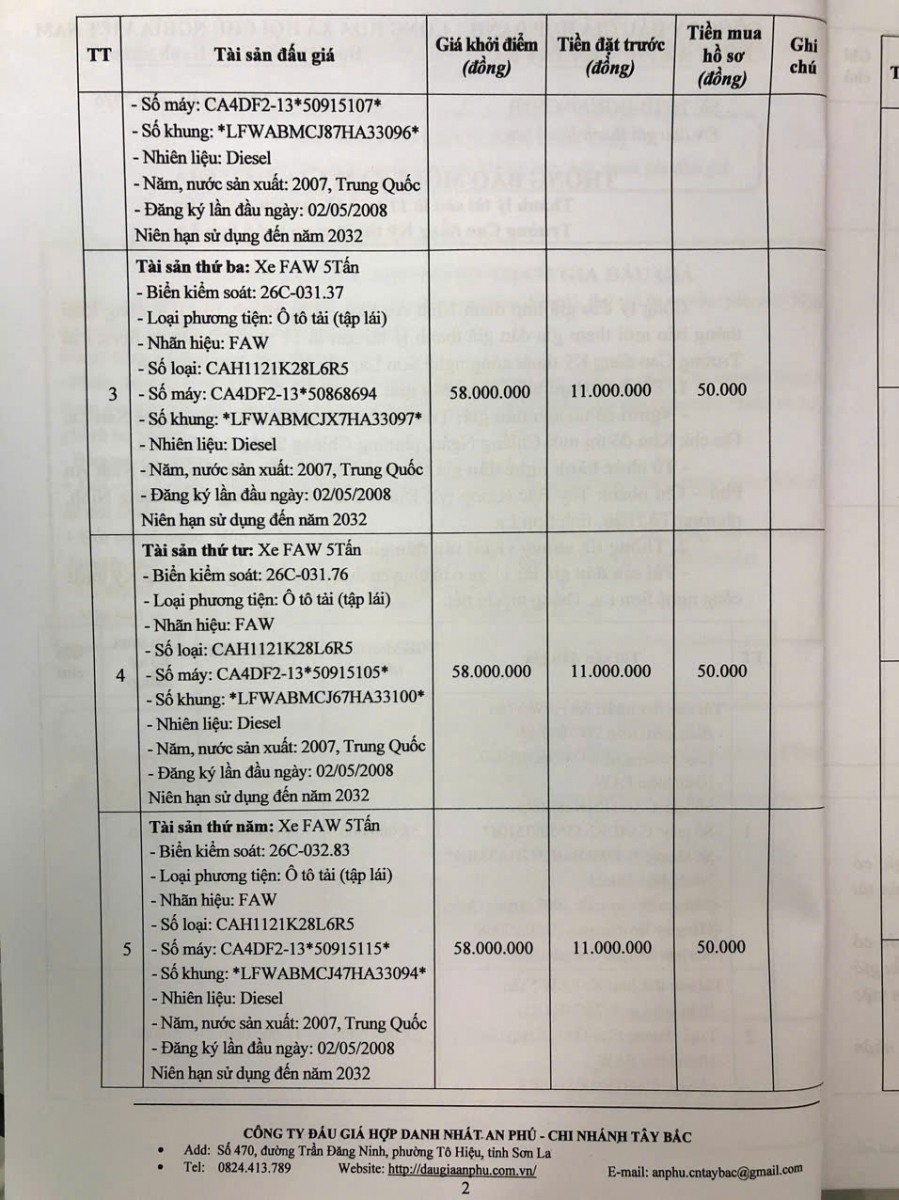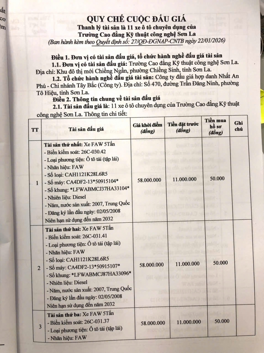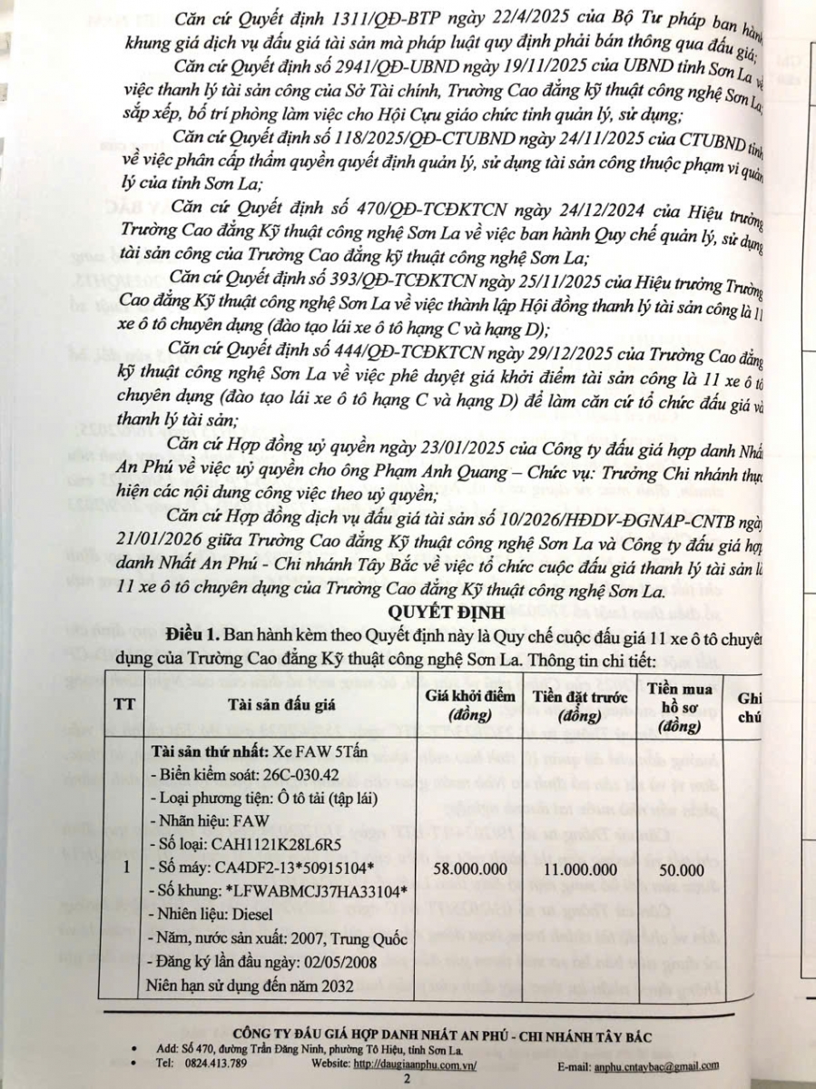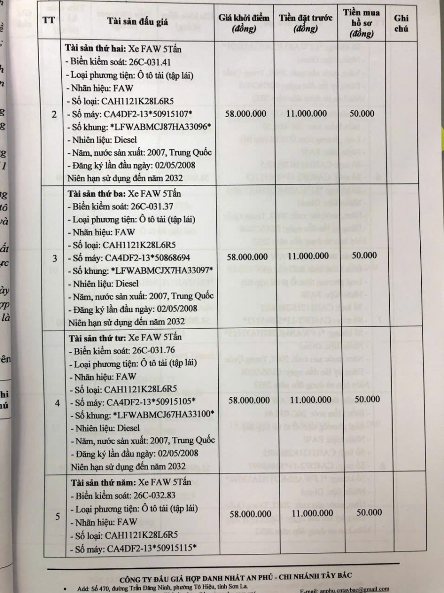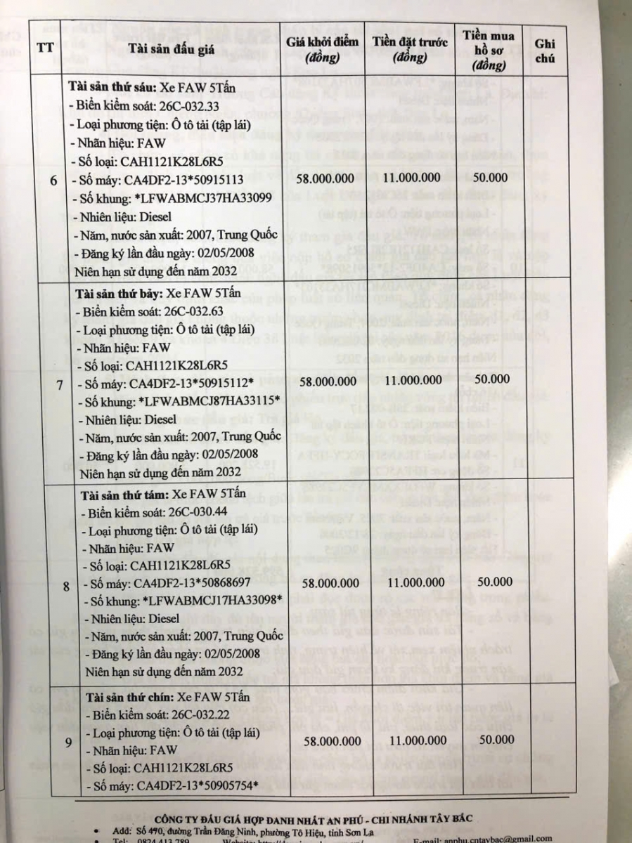 Thông báo mời tham gia đấu giá thanh lý tài sản công 11 xe ô tô