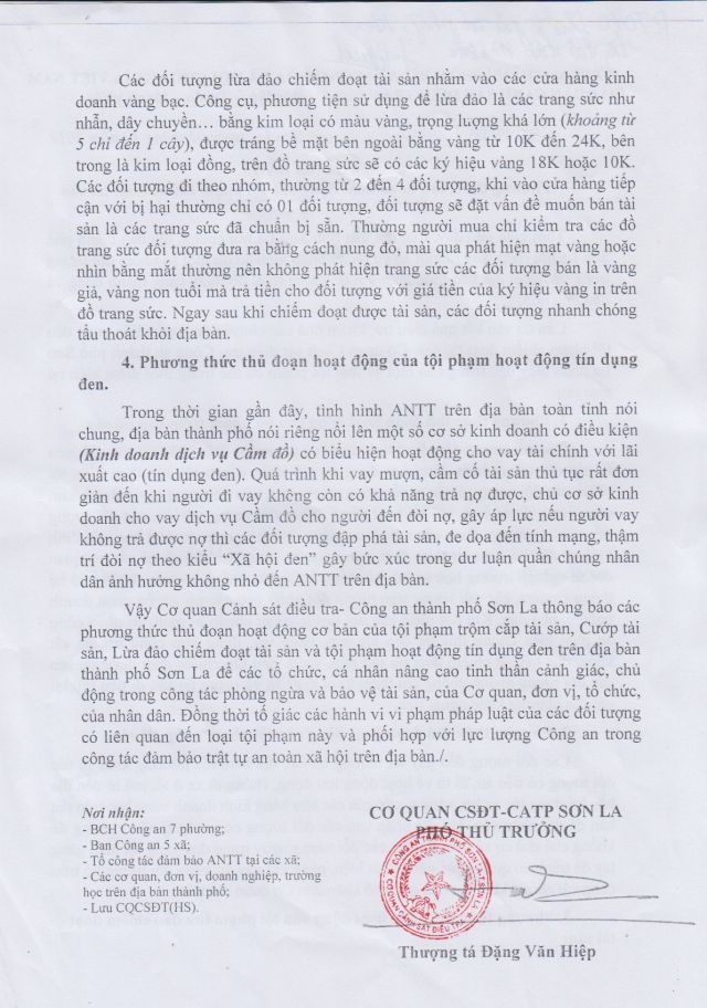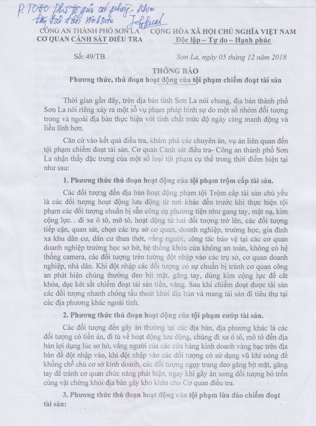 Thông báo phương thức, thủ đoạn hoạt động của tội phạm chiếm đoạt tài sản