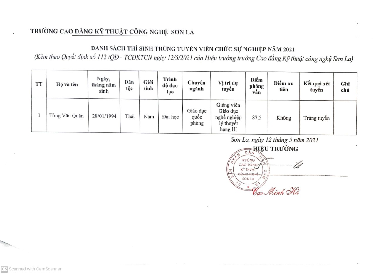 » Thông báo trúng tuyển viên chức năm 2021 (12.08.2021)