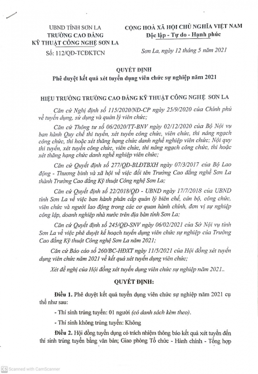 Thông báo quyết định phê duyệt kết quả xét tuyển viên chức năm 2021
