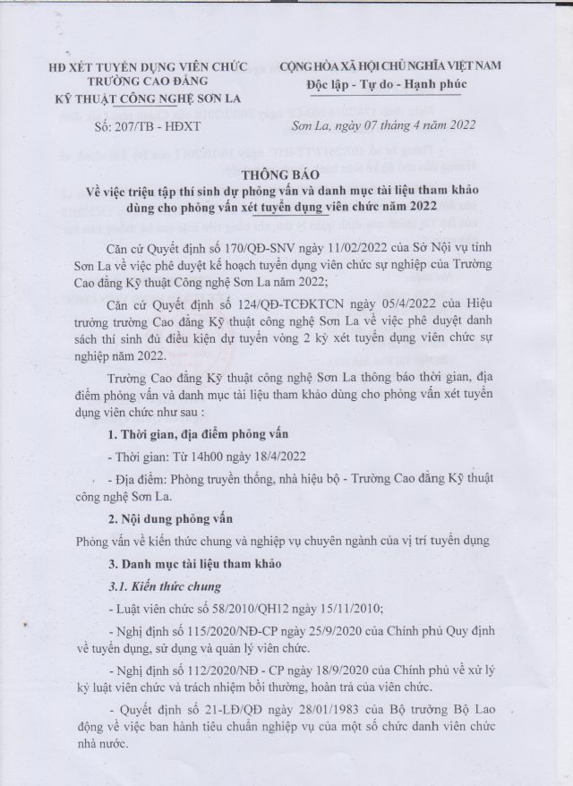 Thông báo triệu tập thí sinh dự phỏng vấn tuyển dụng viên chức năm 2022