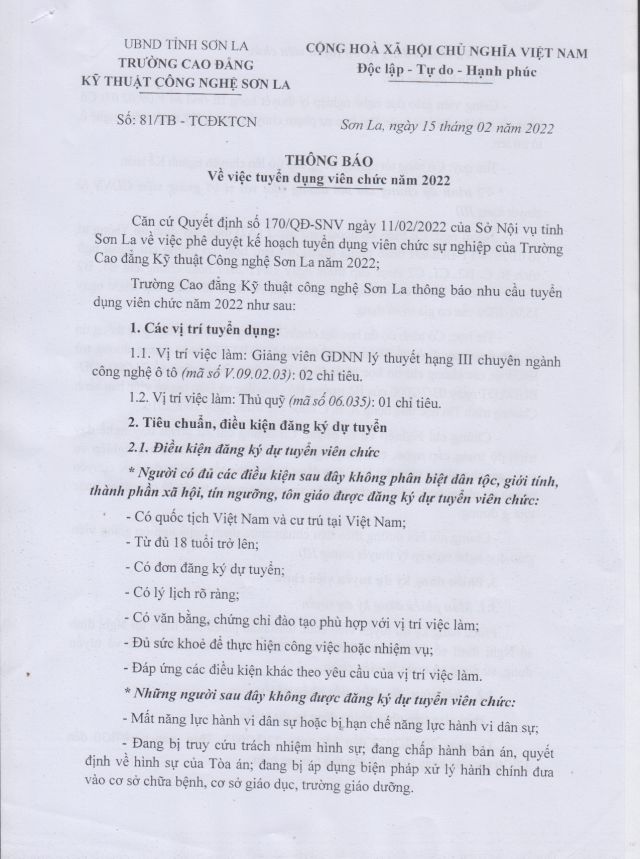 Thông báo tuyển dụng viên chức năm 2022