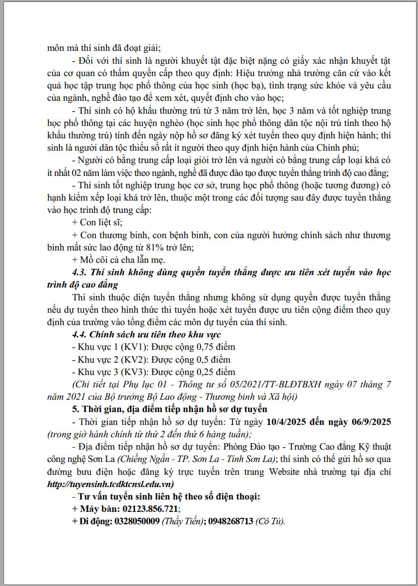 Thông báo tuyển sinh hệ cao đẳng, trung cấp năm học 2025 - 2026