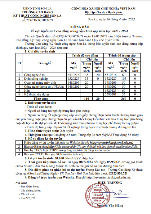 Thông tin Tuyển sinh Cao đẳng, Trung cấp năm học 2023 - 2024