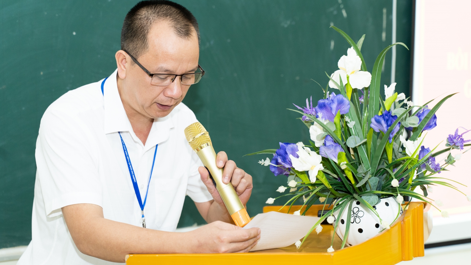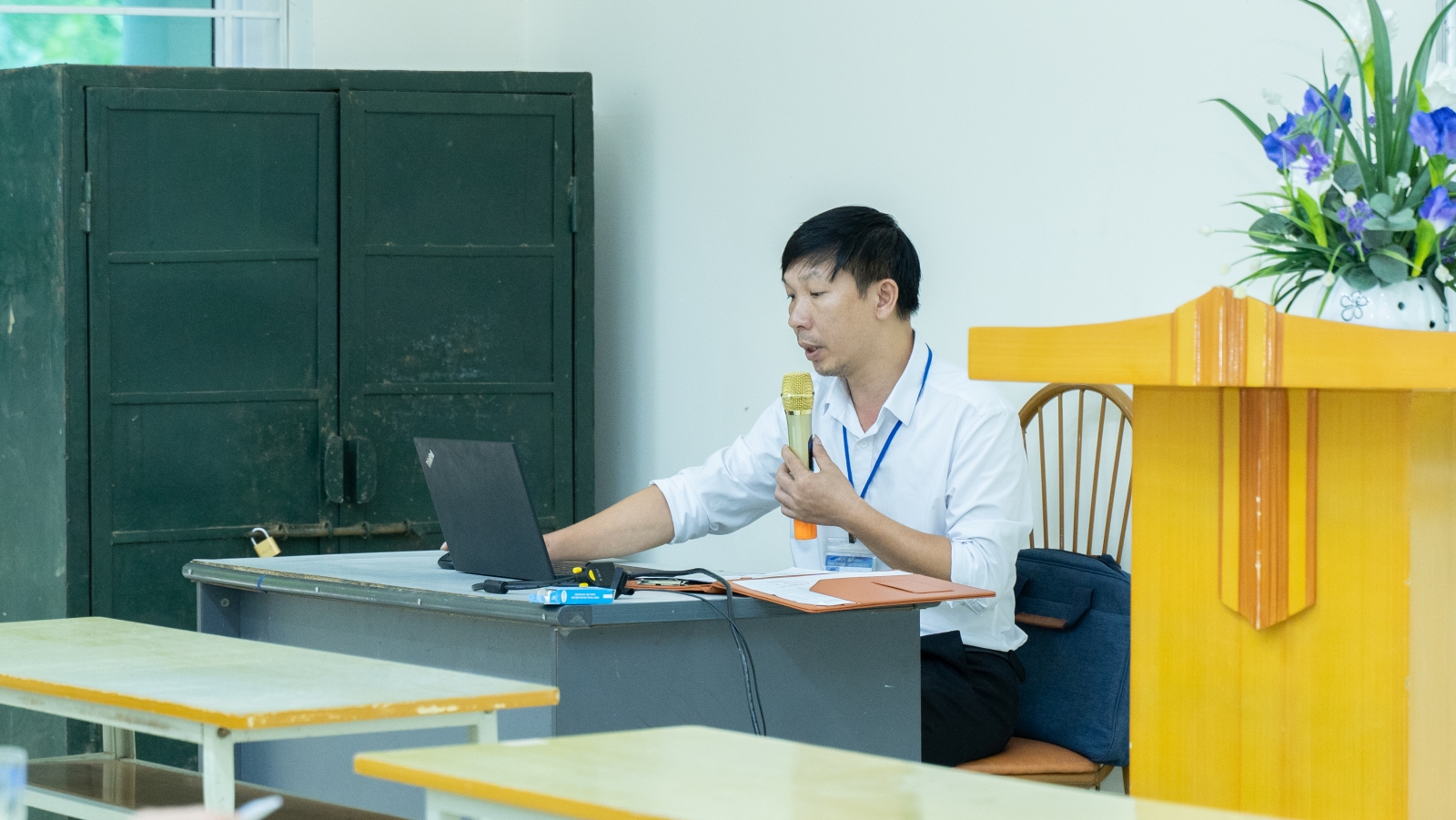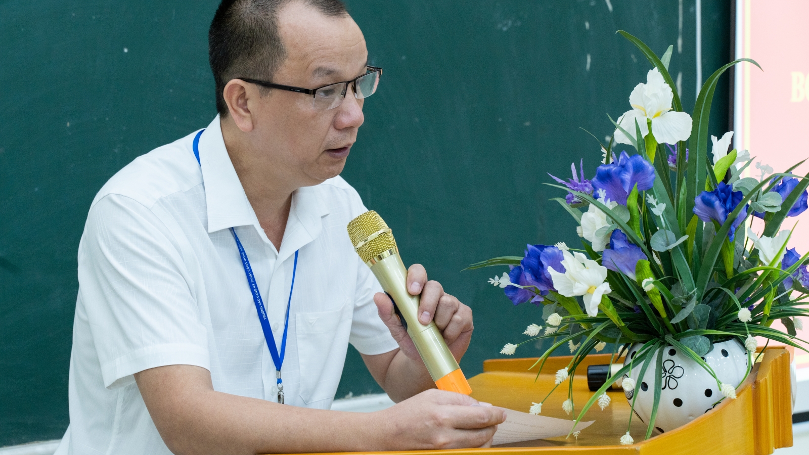 Đ/c Nguyễn Văn Hùng - Bí thư Đảng ủy, Hiệu trưởng trình bày chuyên đề 5