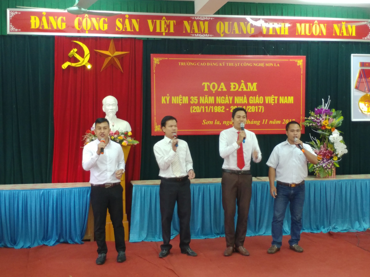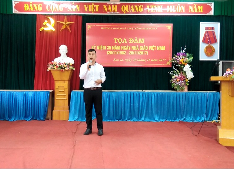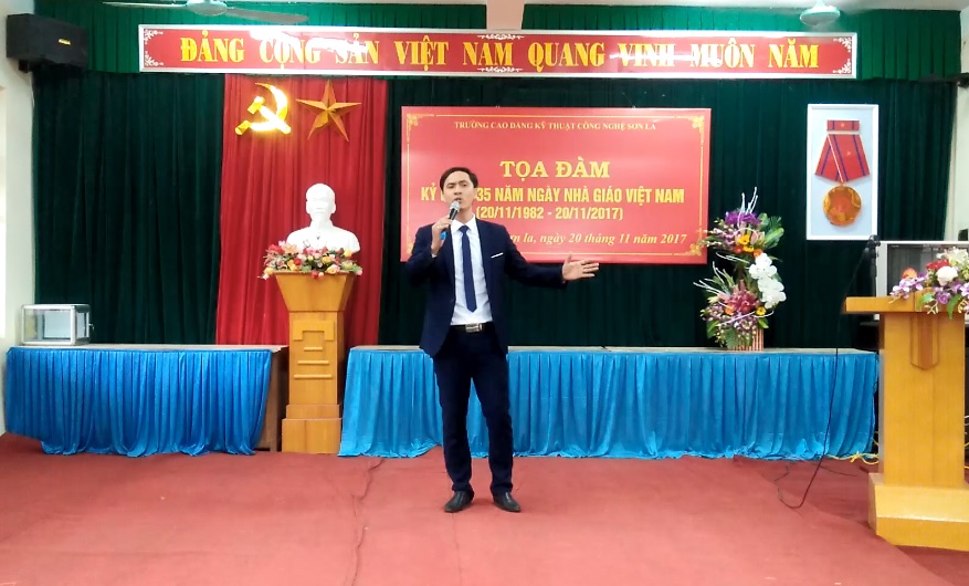 Ngày 20/11/2017 trường Cao đẳng Kỹ thuật công nghệ Sơn La long trọng tổ chức Tọa đàm kỷ niệm 35 năm ngày hiến chương các Nhà giáo Việt Nam (20/11/1982 – 20/11/2017). Dự buổi Tọa đàm có các đồng chí trong BCH Đảng bộ; Ban Giám hiệu; lãnh đạo các Phòng, Khoa; toàn thể Giảng viên, giáo viên và nhân viên Nhà trường.