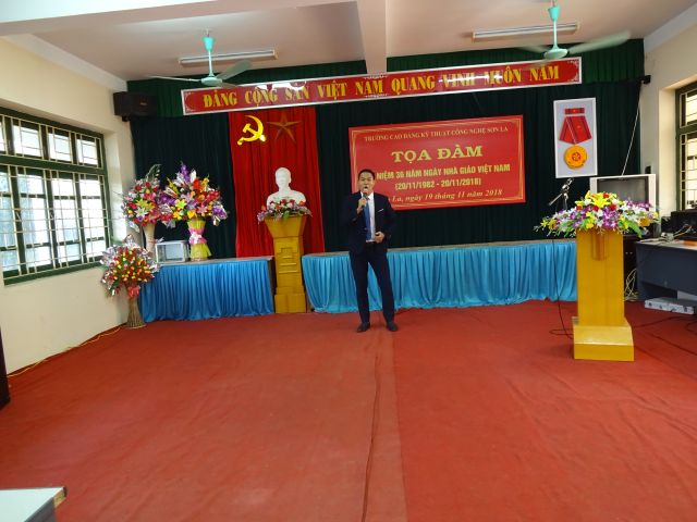Ngày 19/11/2018 Trường Cao đẳng kỹ thuật công nghệ Sơn La đã long trọng tổ chức buổi Tọa đàm kỷ niệm 36 năm ngày Nhà giáo Việt Nam (20/11/1982 - 20/11/2018). Dự buổi tọa đàm có Thầy giáo Cao Minh Hà - Bí thư Đảng ủy, Hiệu trưởng Nhà trường; Các đồng chí trong tập thể Đảng ủy; Ban giám hiệu; BCH Công đoàn, Lãnh đạo các phòng, khoa chuyên môn và toàn thể viên chức, người lao động trong toàn trường.