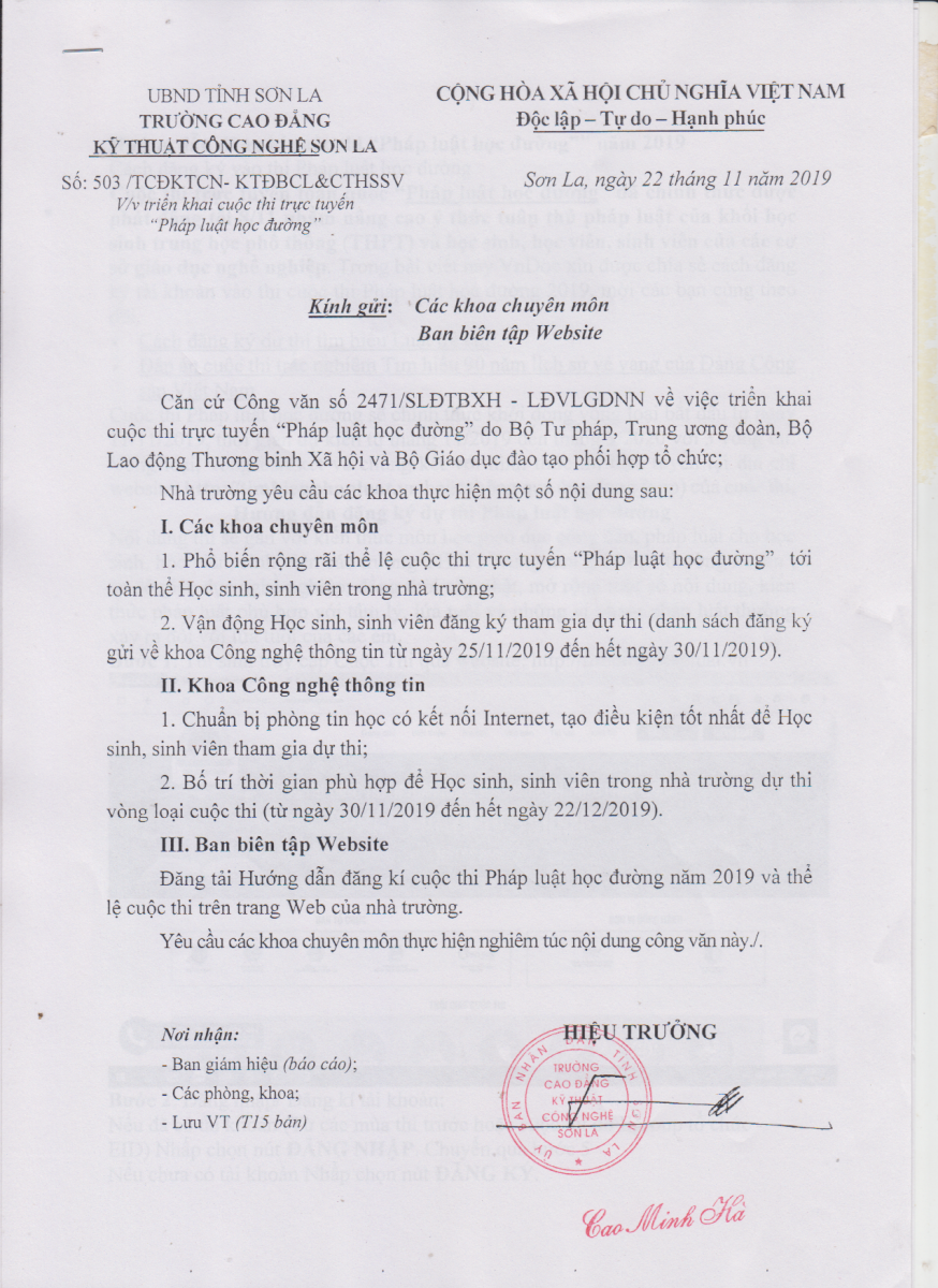 Triển khai cuộc thi trực tuyến "Pháp luật học đường"