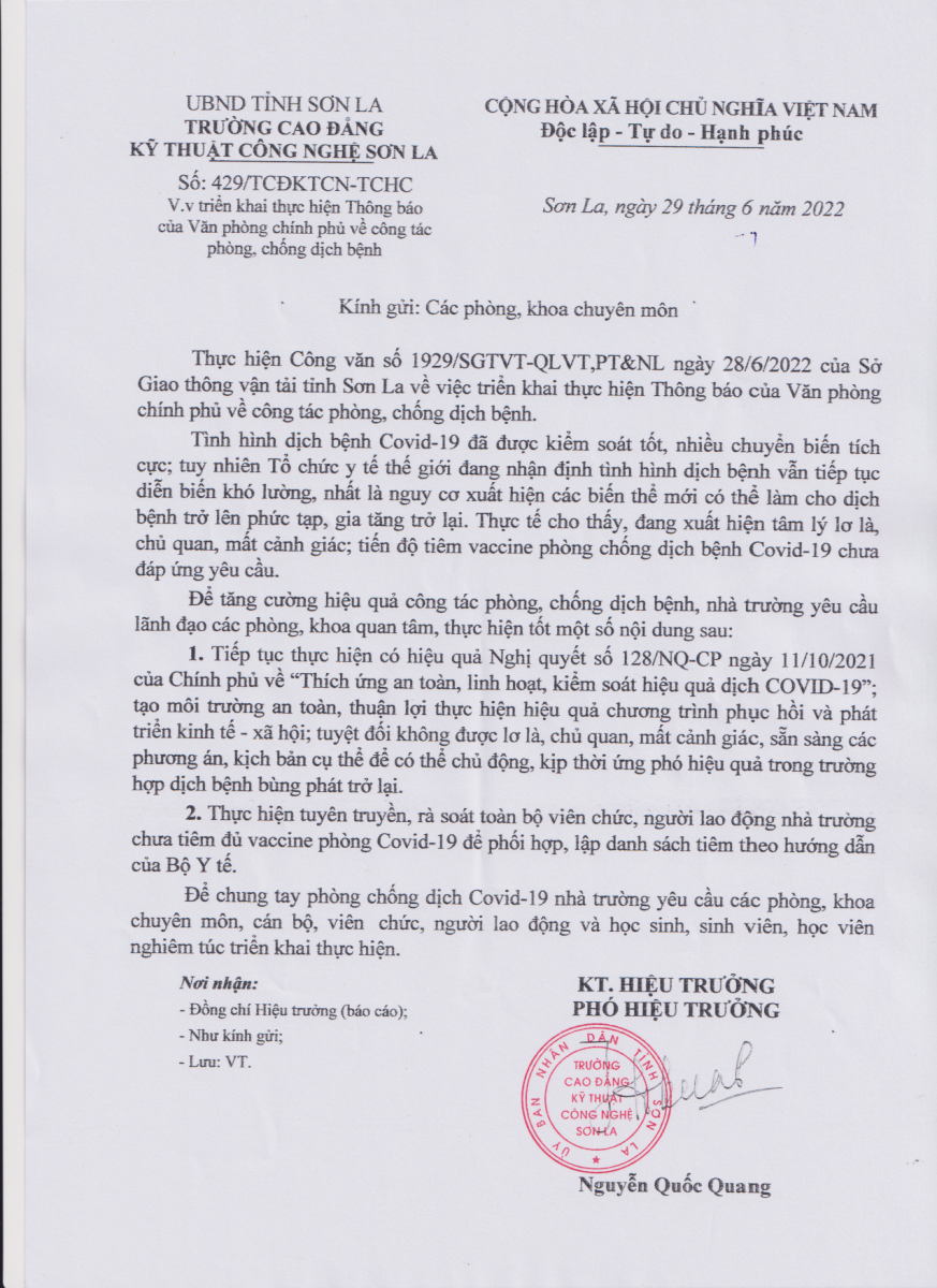 Triển khai thực hiện Thông báo của văn phòng chính phủ về công tác phòng, chống dịch