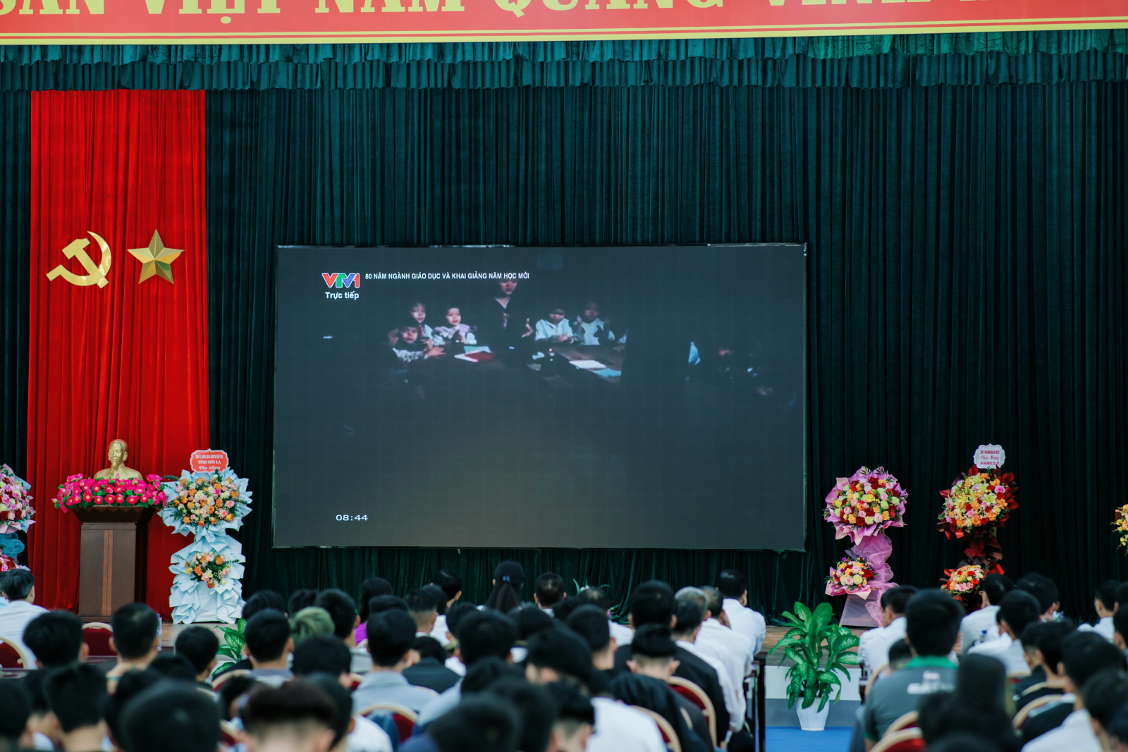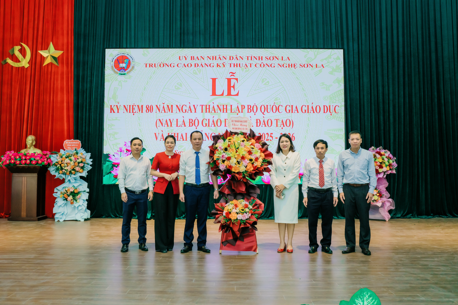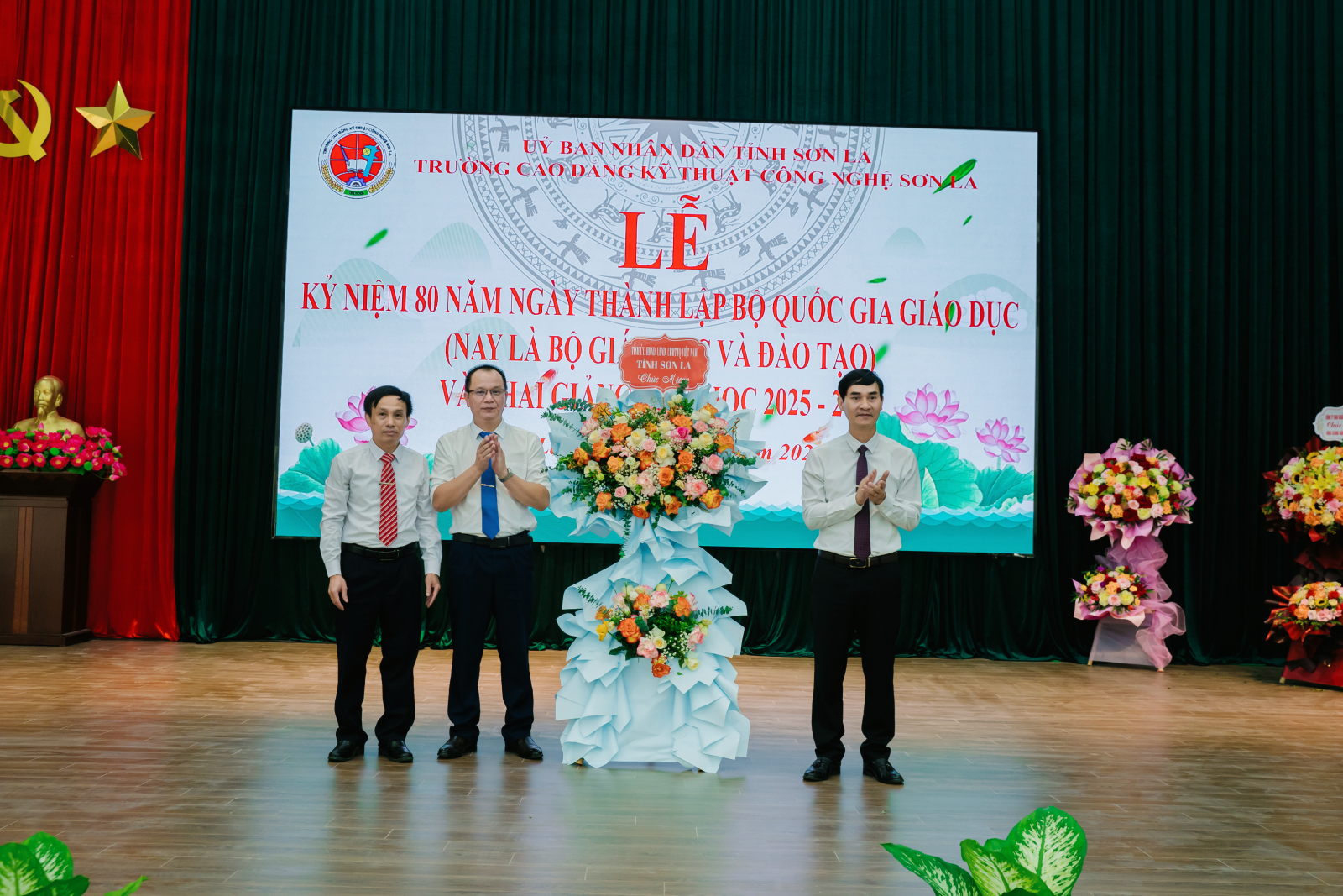 Hòa chung không khí hân hoan ngày khai giảng trên cả nước, lần đầu tiên trong lịch sử, gần 1,7 triệu thầy cô giáo và 30 triệu học sinh, sinh viên cả nước tham dự khai giảng kết hợp trực tiếp – trực tuyến gắn với Lễ kỷ niệm 80 năm truyền thống ngành Giáo dục, được truyền hình trực tiếp trên kênh VTV1 và kết nối đến tất cả các cơ sở giáo dục, đào tạo toàn quốc. Sáng 05/9/2025, tại Hội trường nhà đa năng, Trường Cao đẳng Kỹ thuật Công nghệ Sơn La long trọng tổ chức Lễ kỷ niệm 80 năm ngày thành lập Bộ Quốc gia giáo dục (nay là Bộ Giáo dục và Đào tạo) và khai giảng năm học 2025 – 2026. Đến dự và chỉ đạo tại Lễ khai giảng có đồng chí Nguyễn Viết Hưng – Ủy viên BCH Đảng bộ tỉnh, Giám đốc Sở Dân tộc và Tôn giáo; lãnh đạo, chuyên viên các sở, ngành tỉnh. Về phía Nhà trường có đồng chí Nguyễn Văn Hùng – Bí thư Đảng ủy, Hiệu trưởng; tập thể cán bộ, giảng viên, cùng gần 300 HSSV đại diện cho hơn 1.000 HSSV toàn trường. Buổi lễ cũng đón tiếp các cơ quan, doanh nghiệp, đối tác đến dự và chia vui với thầy và trò nhà trường. Không khí khai giảng rộn ràng, trang trọng đã khởi đầu cho một năm học mới với nhiều niềm tin và kỳ vọng. Dưới đây là một số hình ảnh của buổi Lễ.