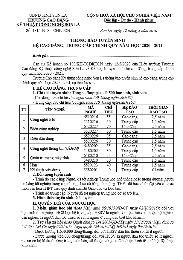 » Kế hoạch tổ chức xét thăng hạng chức danh nghề nghiệp viên chức năm 2020 của Trường Cao đẳng Kỹ thuật công nghệ Sơn La (02.10.2020)