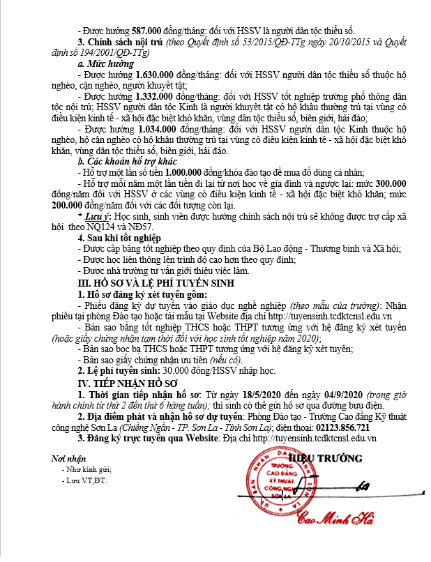 Tuyển sinh cao đẳng, trung cấp chính quy năm 2020