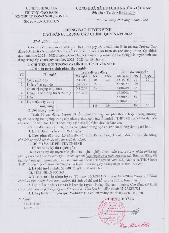 Tuyển sinh cao đẳng, trung cấp chính quy năm học 2022 - 2023