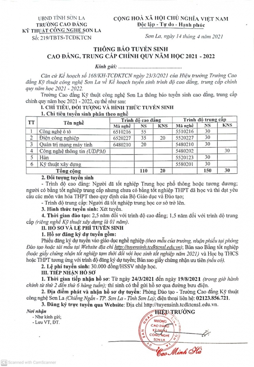 Tuyển sinh năm học 2021 - 2022