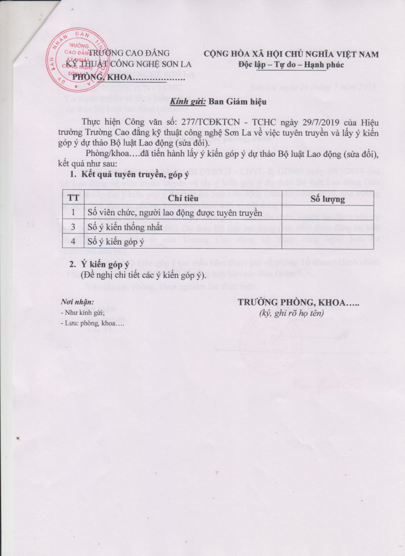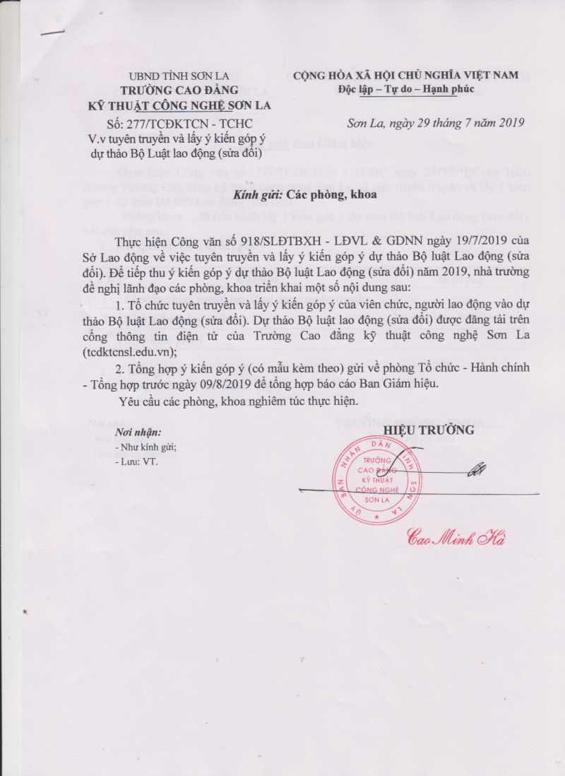 » Thông báo tuyển sinh năm học 2019 - 2020 (04.05.2019 ) » Kết quả tốt nghiệp, hệ trung cầp nghề kỹ thuật xây dựng K37 (03.05.2019 ) » Chính sách chất lượng của Trường Cao đẳng Kỹ thuật công nghệ Sơn La (21.12.2018 ) » Phiếu đăng ký xét tuyển năm 2018 (07.07.2018 ) » Thông báo tuyển sinh năm học 2018 - 2019 (06.06.2018 ) » Kết quả tốt nghiệp hệ trung cấp nghề kỹ thuật xây dựng K36 (06.06.2018 ) » Công văn về việc tăng cường công tác HSSV, ngăn ngừa diễn biến sự việc Hội thánh đức chúa trời (04.05.2018 ) » Quy chế dân chủ trong hoạt động của trường CĐ Kỹ thuật công nghệ Sơn La (24.01.2018 ) » Kế hoạch triển khai hướng dẫn số 11-HD/ĐUK (11.01.2018 ) » Kế hoạch học tập chuyên đề năm 2018 ''HỌC TẬP CHUYÊN ĐỀ NĂM 2018 “XÂY DỰNG PHONG CÁCH, TÁC PHONG CÔNG TÁC CỦA NGƯỜI ĐỨNG ĐẦU, CỦA CÁN BỘ, ĐẢNG VIÊN TRONG HỌC TẬP VÀ LÀM THEO TƯ TƯỞNG, ĐẠO Đ. (11.01.2018 )