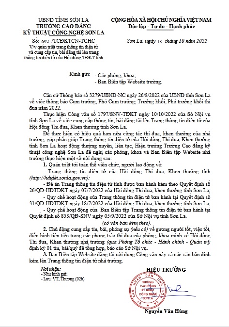 Về việc quán triệt trang thông tin điện tử và cung cấp tin bài đăng tải lên trang thông tin điện tử của Hội đong thi đua khen thưởng tỉnhđiện tử